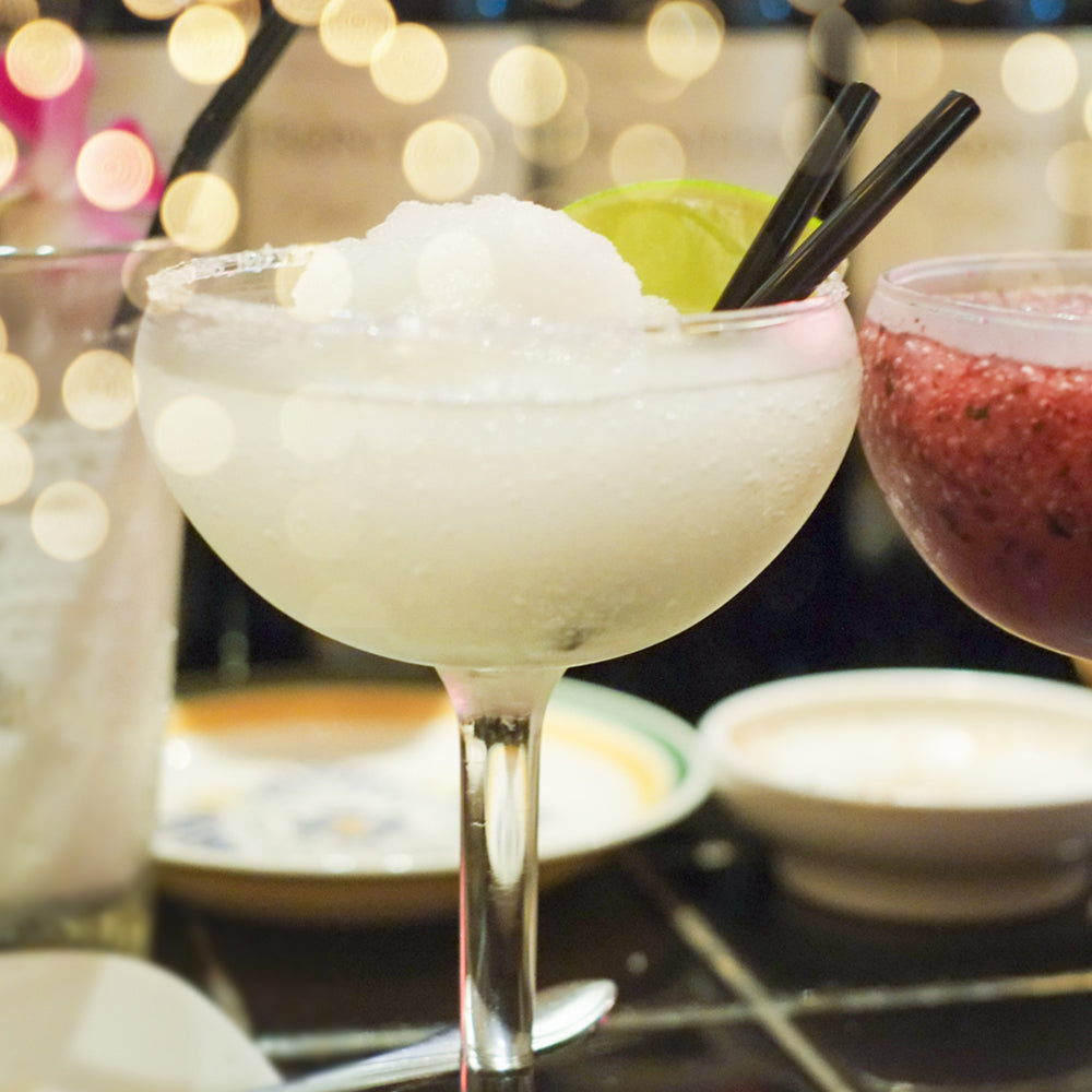 (2) Add the CHOYA Yuzu and white curaçao to a blender, add the ice, and blend well.
