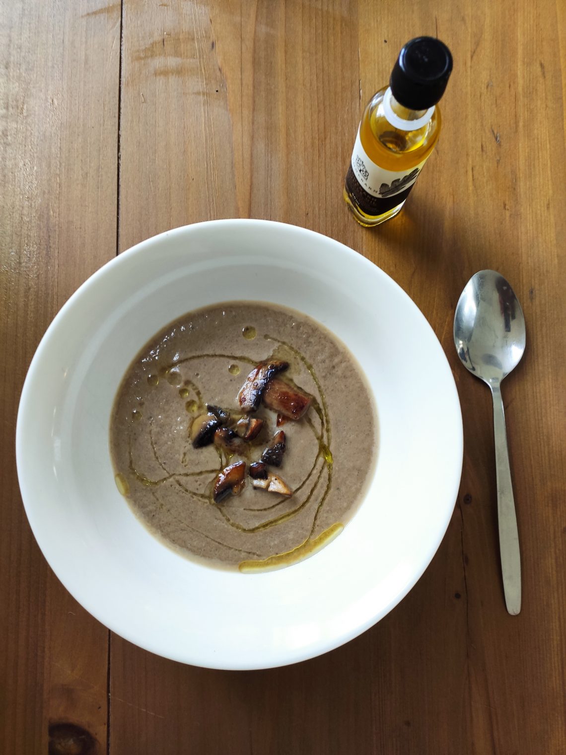 (7) Once smooth, ladle into bowls and drizzle one tablespoon of Stonebarn Truffle Oil over the soup.